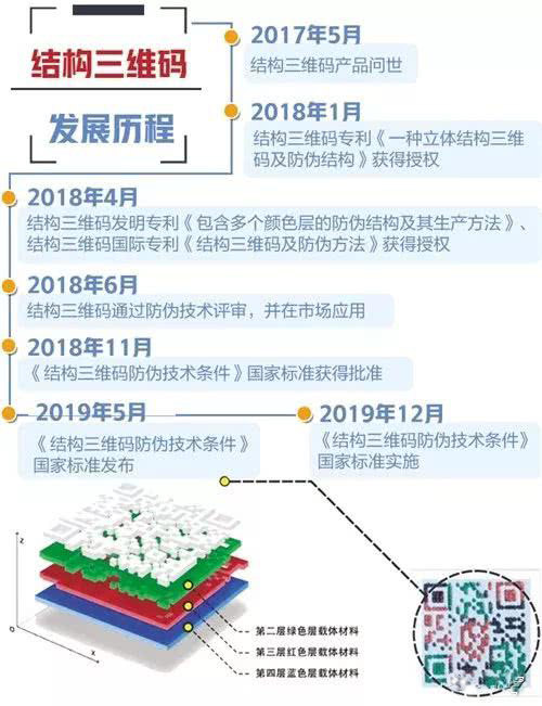 今年5月,全國防偽標準化技術委員會新增一項防偽國家標準——《結構三維碼防偽技術條件》。據悉,該標準于5月10日經國家市場監管總局、國家標準委批準發布,并于2019年12月1日起正式實施。